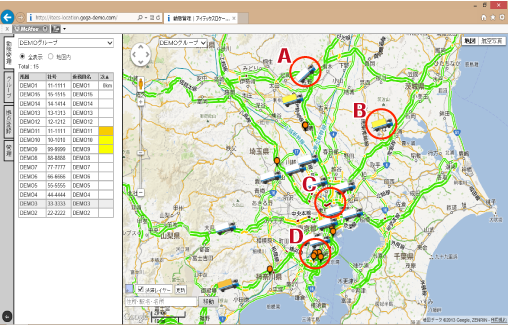 ランドマークを任意に登録可能です。お得意様の位置自社の拠点位置などを動態と同一画面で参照する事で、効率的な運用を提供いたします。