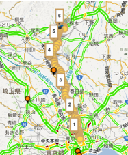 Googleが提供する「渋滞情報」をタイムリーに更新します。運行状態の確認、動態へのタイムリーな指示など、安定運用にご活用いただけます。